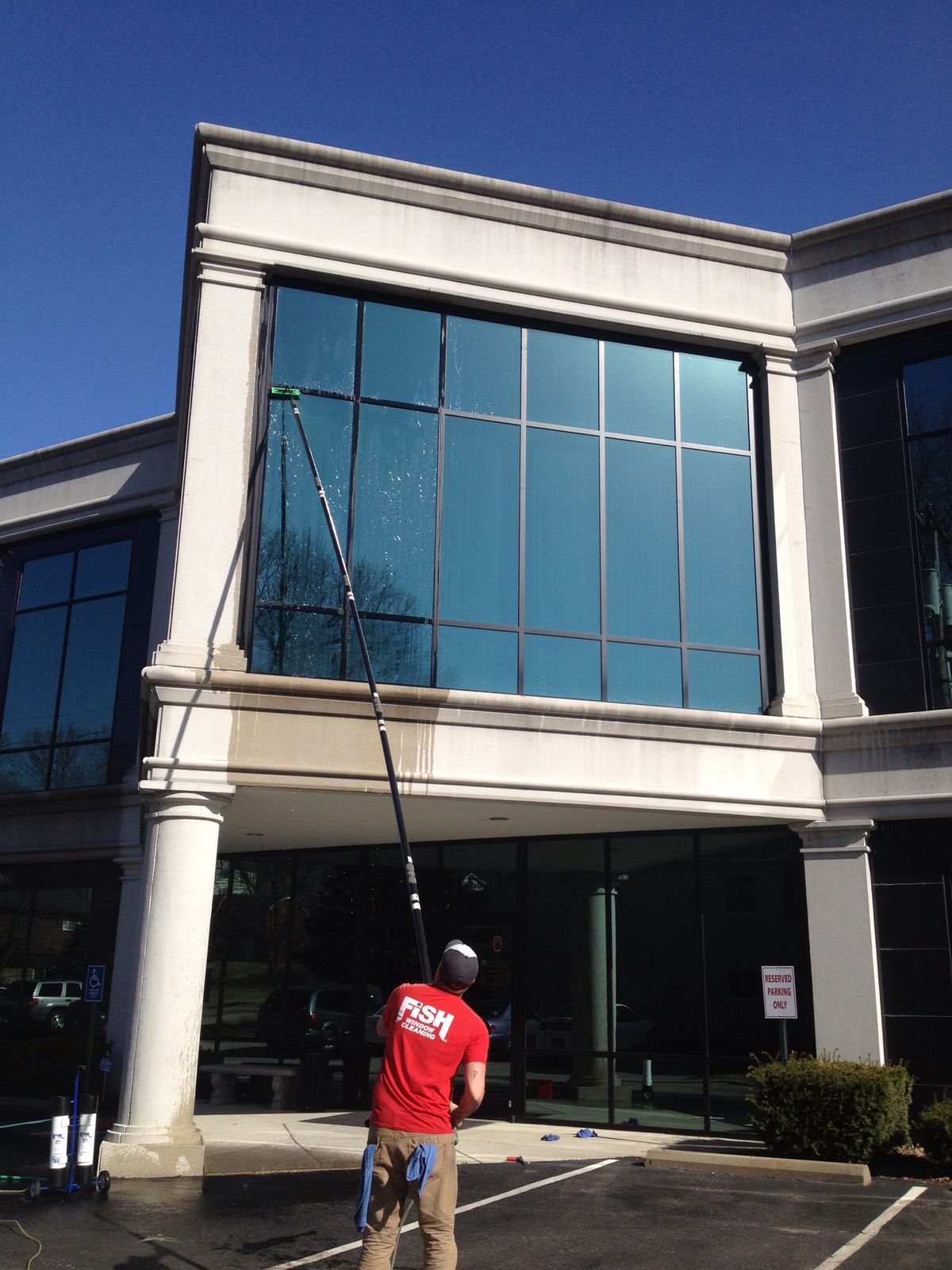 A: We can safely clean windows up to 4–5 stories high without ladders or lifts.